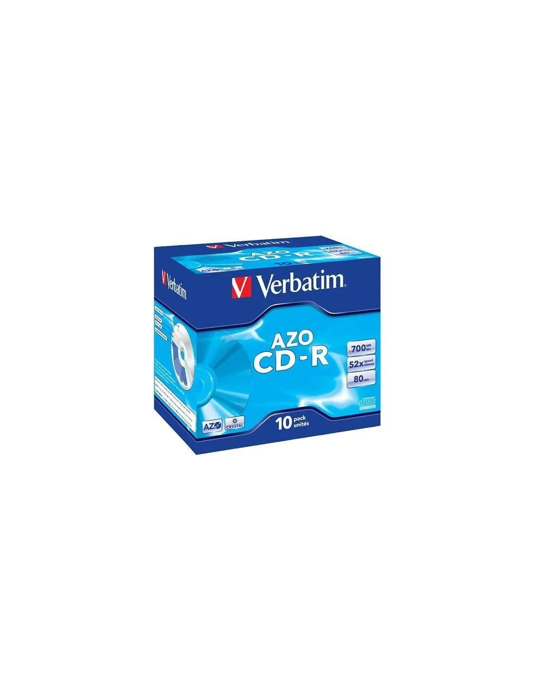 CD-R vervatim 700 mb velocidad de 52x duración 80 minutos caja jewel cristal