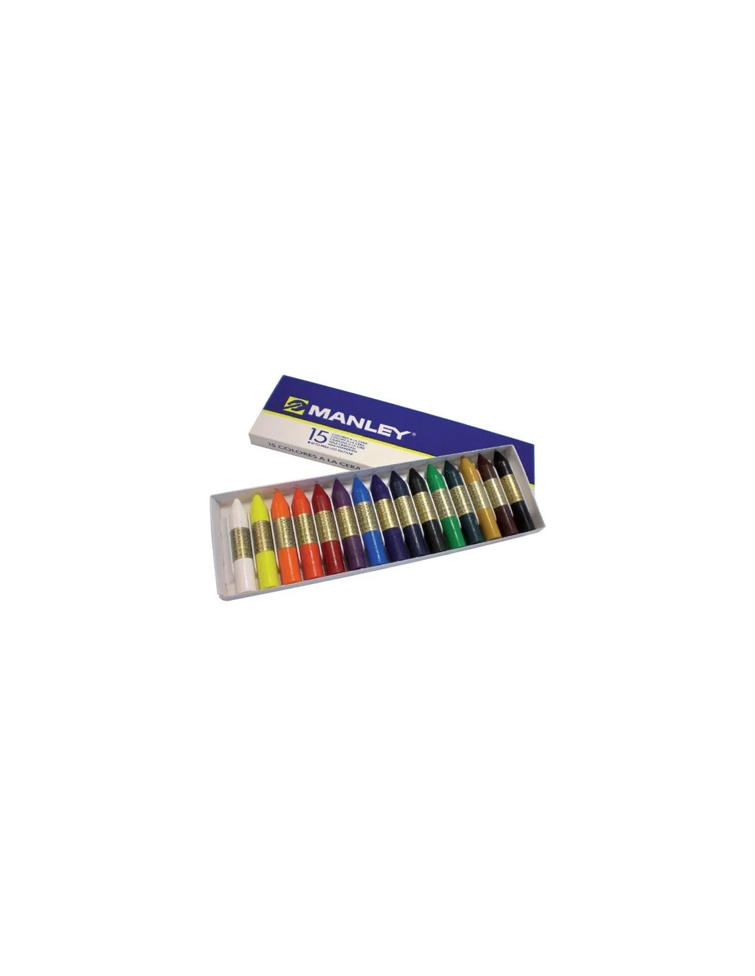 Lapices de cera blanda marca ManleyCaja de 10 unidades de colores surtidos
