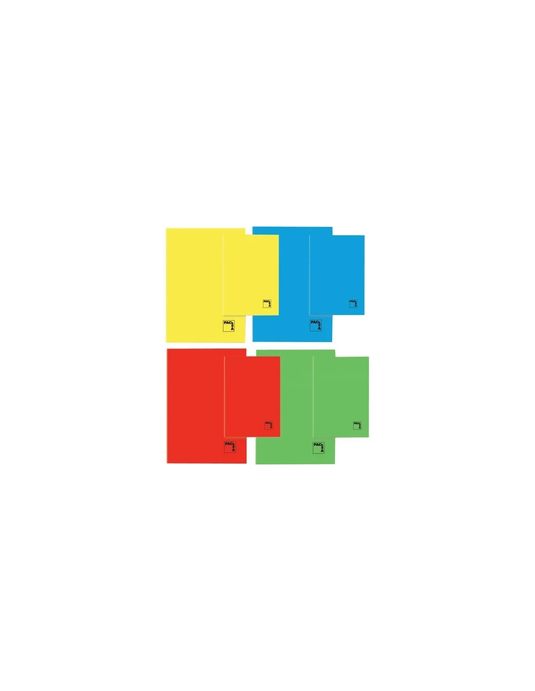 Libreta grapada folio Pacsa 50 hojas de 70 gr, 4 colores surtidos de forma aleatoria, tapas en cartulina gofrada.