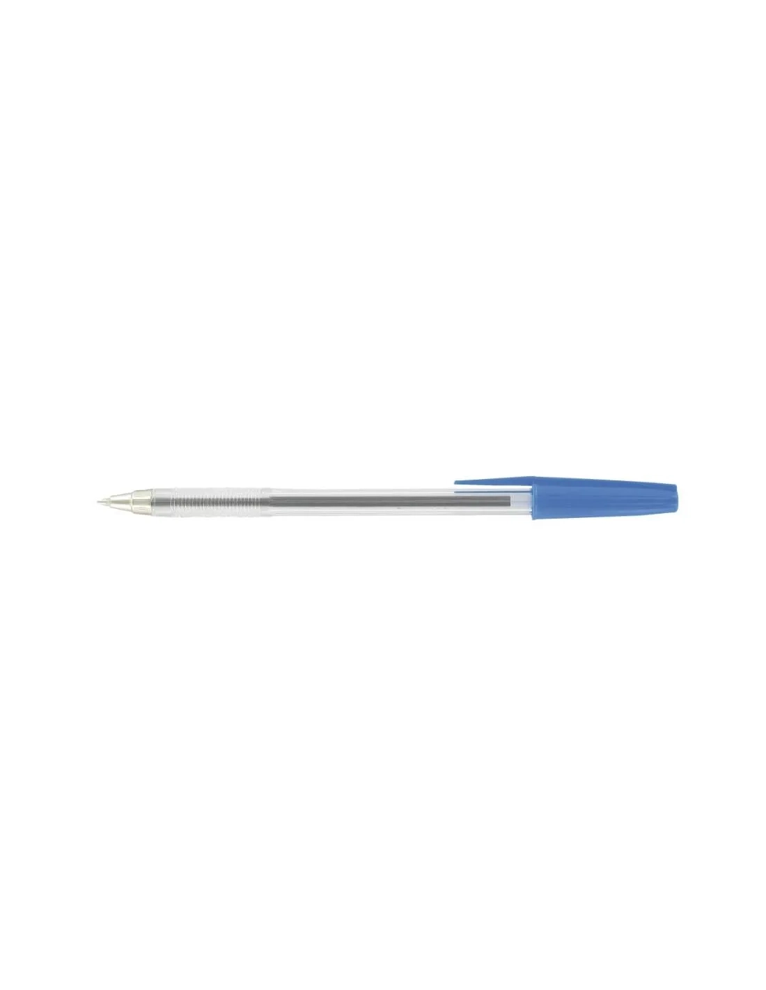 Bolígrafo de escritura tradicional tinta de aceite. Punta media 0,7 mm. Trazo 0.5 mm. Cuerpo transparente con capuchón del color de la tinta.