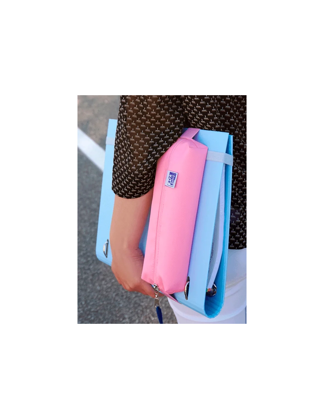 Guarda todos tus artículos escolares en tu estuche y desplázate con tu portatodo unido a tu cuaderno o carpeta Oxford