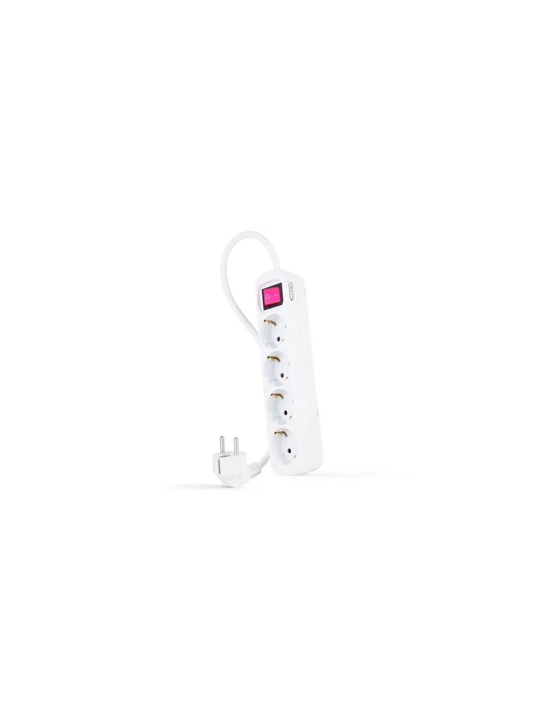 Base eléctrica múltiple con conmutador luminoso. Cable de 3 x 1,5 mm y 1,4 metros de longitud. Número de tomas: 4.