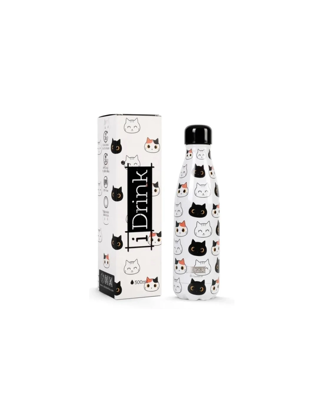 Botella térmica iDrink decorada gatos 500 ml  conservan el frio durante 24 horas y el calor durante 12 horas. Capacidad 500 ml.