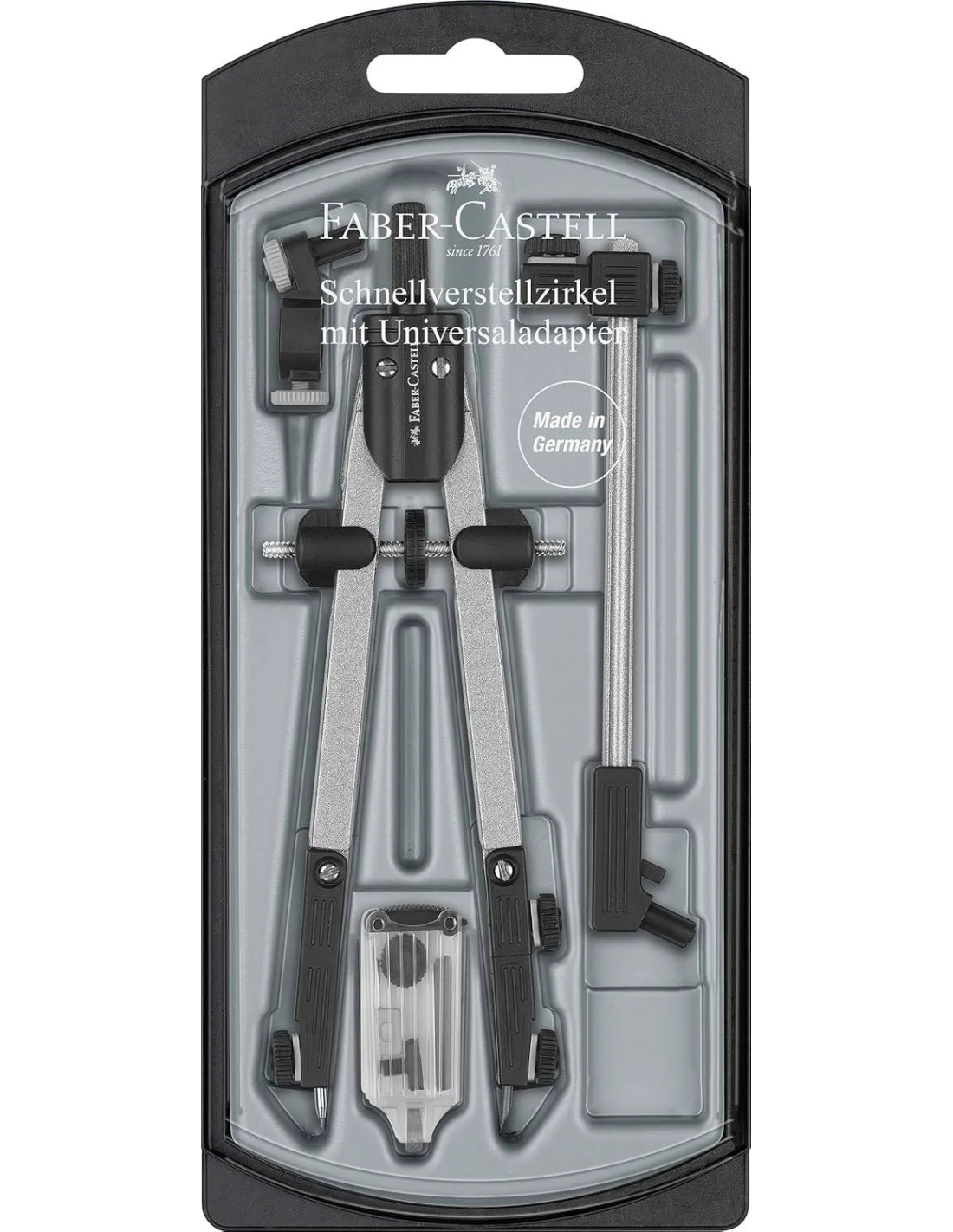 Compas Técnico de ajuste rápido de alta calidad Faber Castell 174045, con articulaciones en ambos brazos