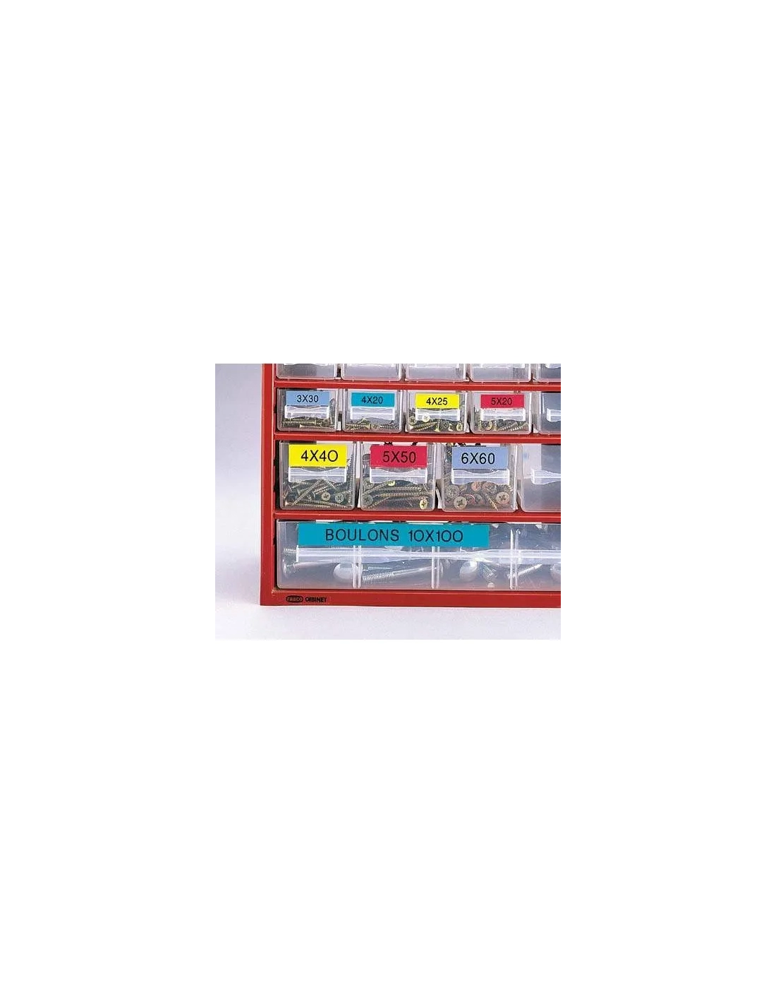 Cinta precortada que permite separa fácilmente la etiqueta de su soporte.Cinta para dymo letratag impresión de negro sobre fondo rojo. Referencia fabricante S0721630, adherencia sobre la mayoria de superficies: papel, acero,madera cristal,ABS, acrílico,PVC,polietileno, policarbonato..... Despegado de las etiquetas dejando señales mínimas de adhesivo.