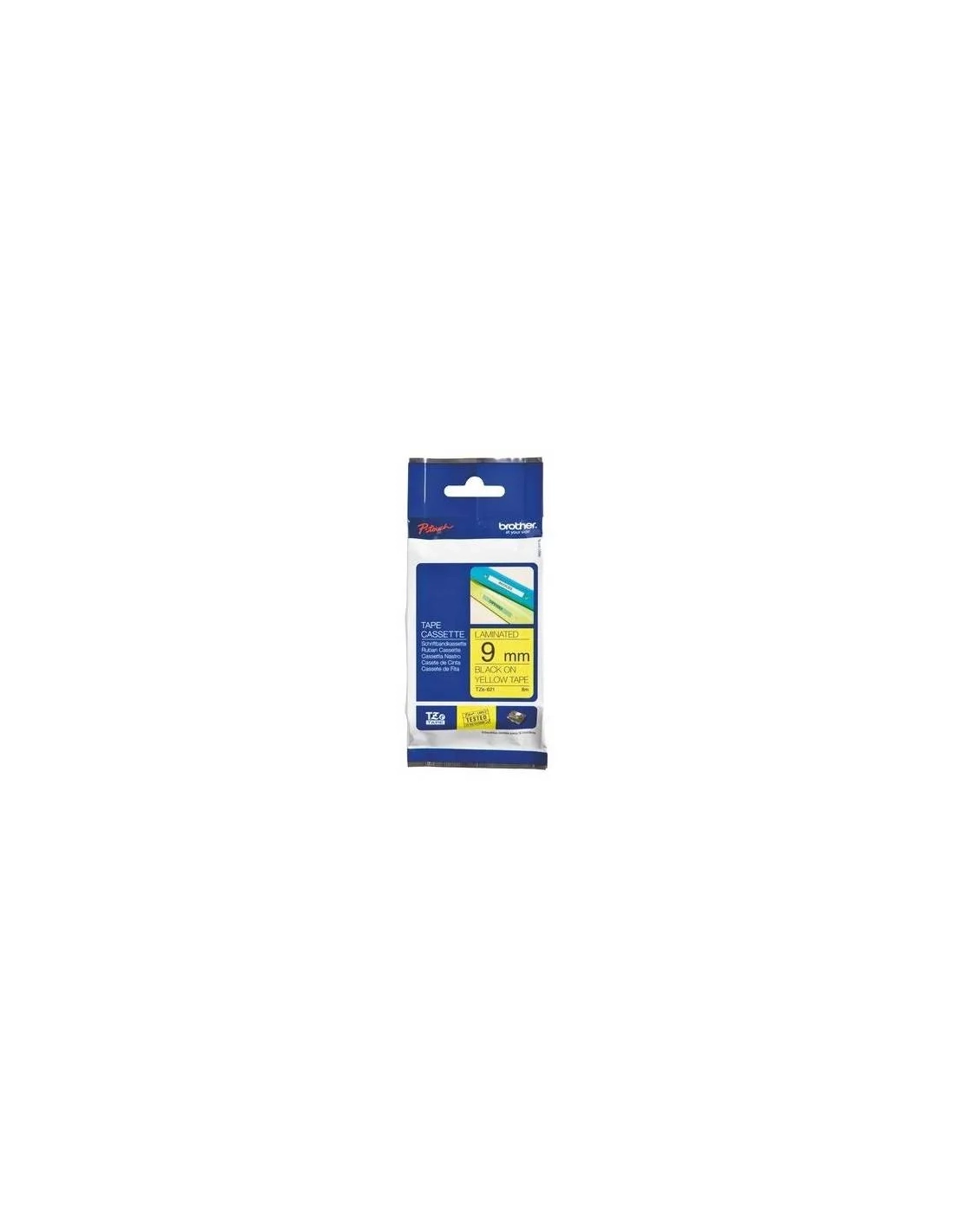 Cintas laminadas Brother TZ, etiquetado profesional para la oficina, la industria y el hogar. Resistentes a la abrasión, al calor, al frío, a la luz solar, al agua y a productos químicos.Cintas laminadas Brother TZ, etiquetado profesional para la oficina, la industria y el hogar. Impresión de negro sobre fondo amarillo, cinta de 8 metros de longitud por 9 mm de ancho
