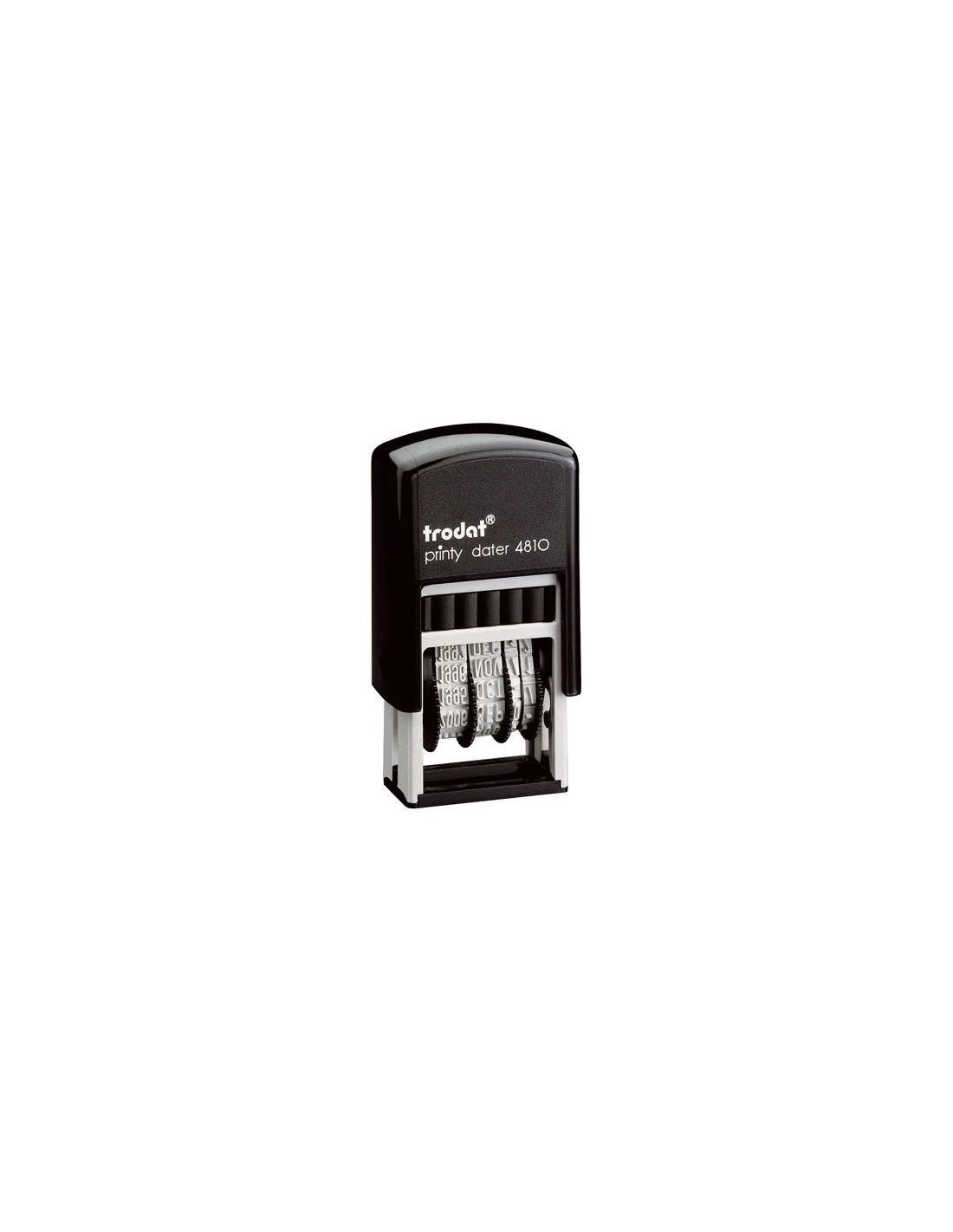 Almohadilla de entintaje automático incorporada y bandas. Cambio y ajuste de fecha mediante giro de las bandas. Mod. Trodat: 4810. Caracteres: 3,8 mm.Fechador de bandas Printy Trodat 4810 3,8mm