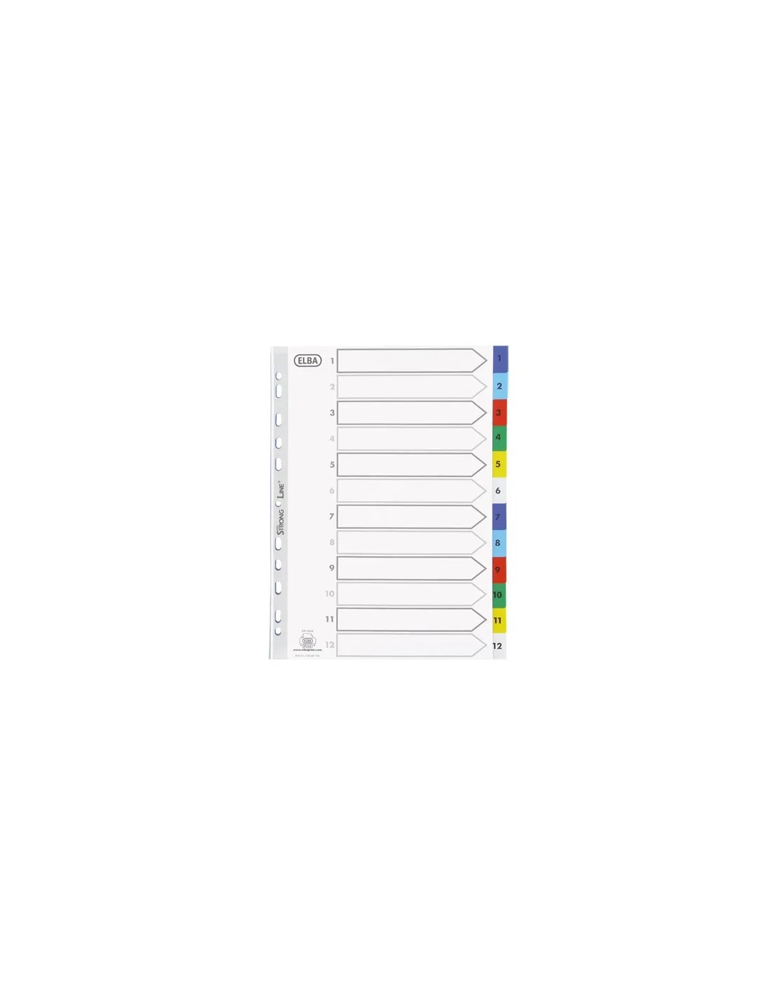 Separadores de polipropileno con 12 divisiones numéricas multicolores. Perforación universal. Imprimibles recto/verso. Formato A4.Separadores de polipropileno con 12 divisiones numéricas multicolores. Perforación universal. Imprimibles recto/verso. Formato A4.