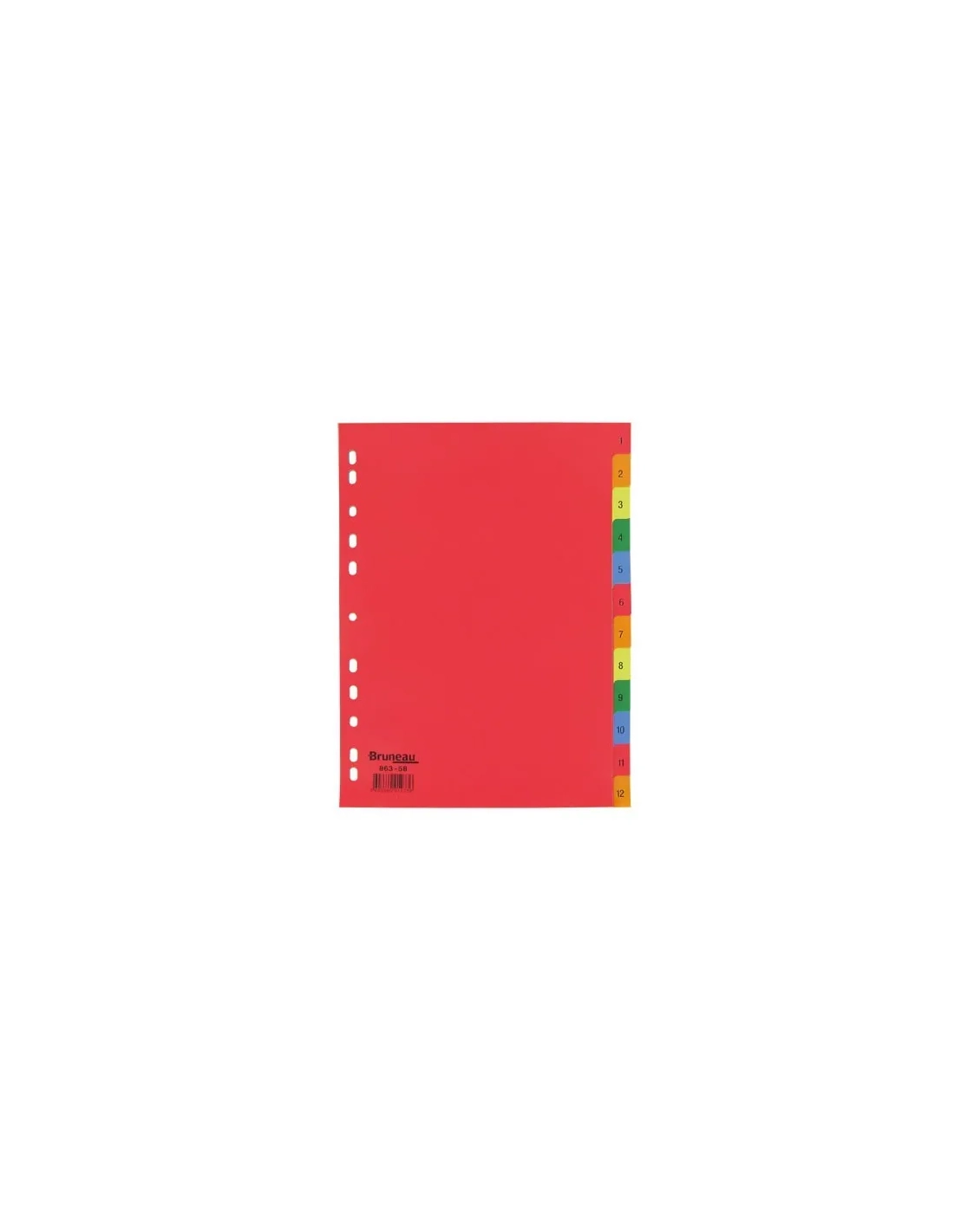 Perforación universal. Excelente relación calidad/precio. Elección de materiales, formatos y colores. Separadores numéricos,12 divisiones multicolores.Juego separadores numericos 12 divisiones color A4 JMB