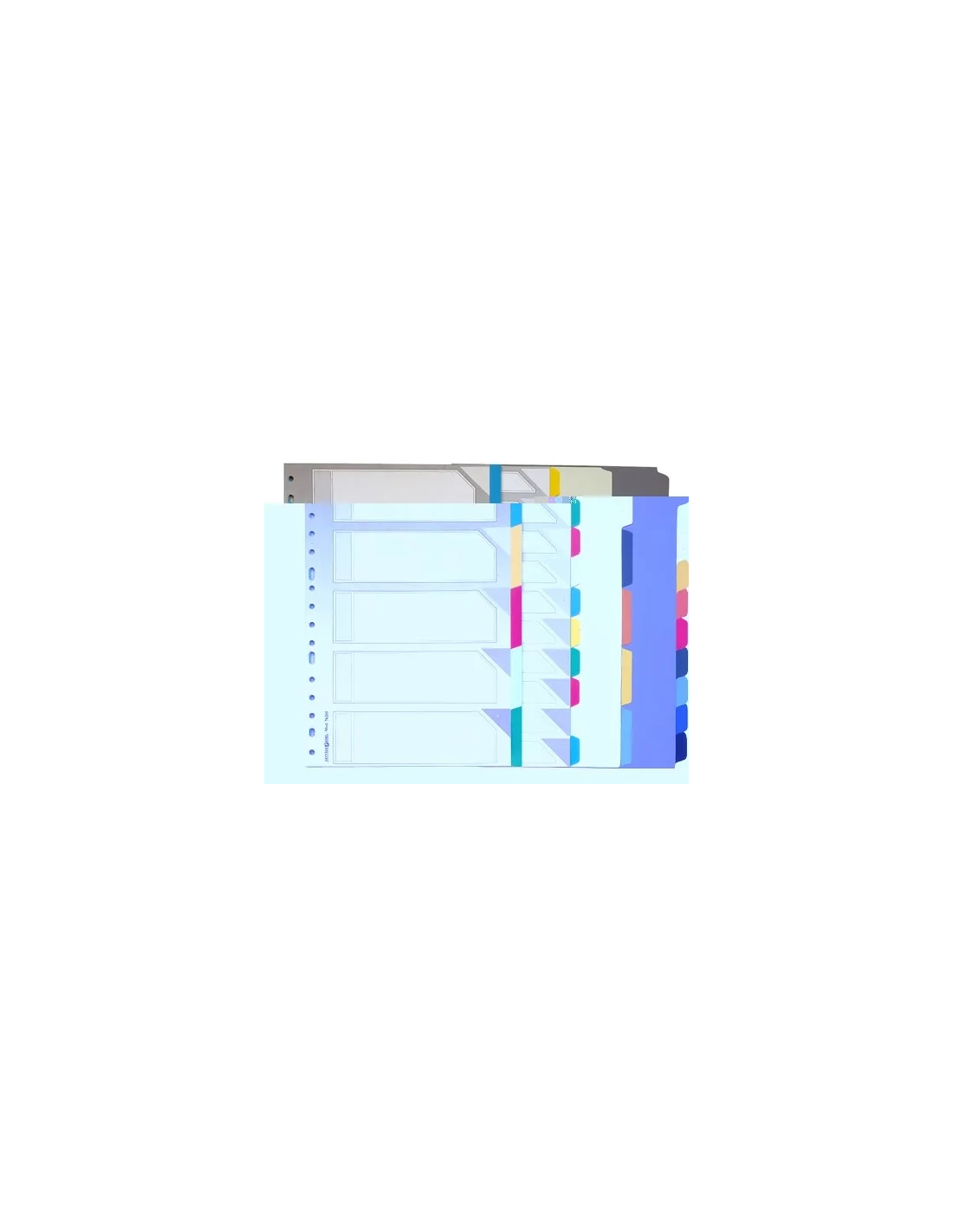 Separadores multitaladro de polipropileno.Formato: Cuarto vertical.11 anillas.5 divisiones.Galga 0 20.Separadores cuarto vertical 11 anillas 5 divisiones polipropileno 0.20 galga