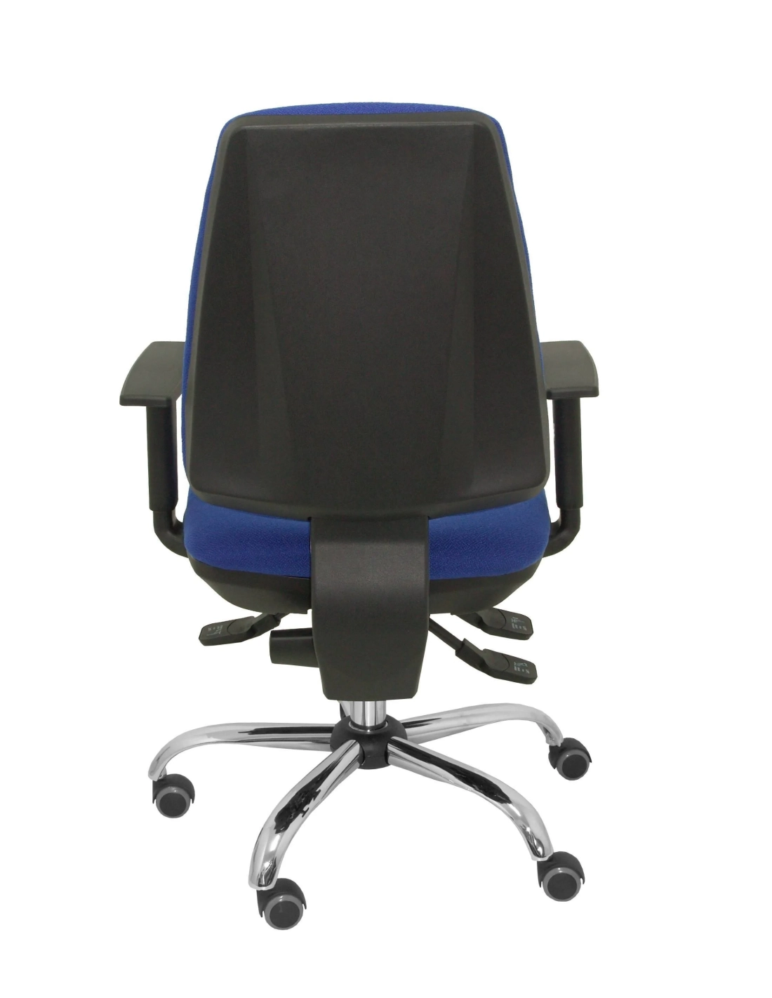 Silla oficina con mecanismo asincro que permite la regulación del respaldo y el asiento por separado, Regulable en altura mediante cilindro de gas Giratoria 360º Base cromada de 5 radios y 60 cm de diámetro Ruedas de parqué.
