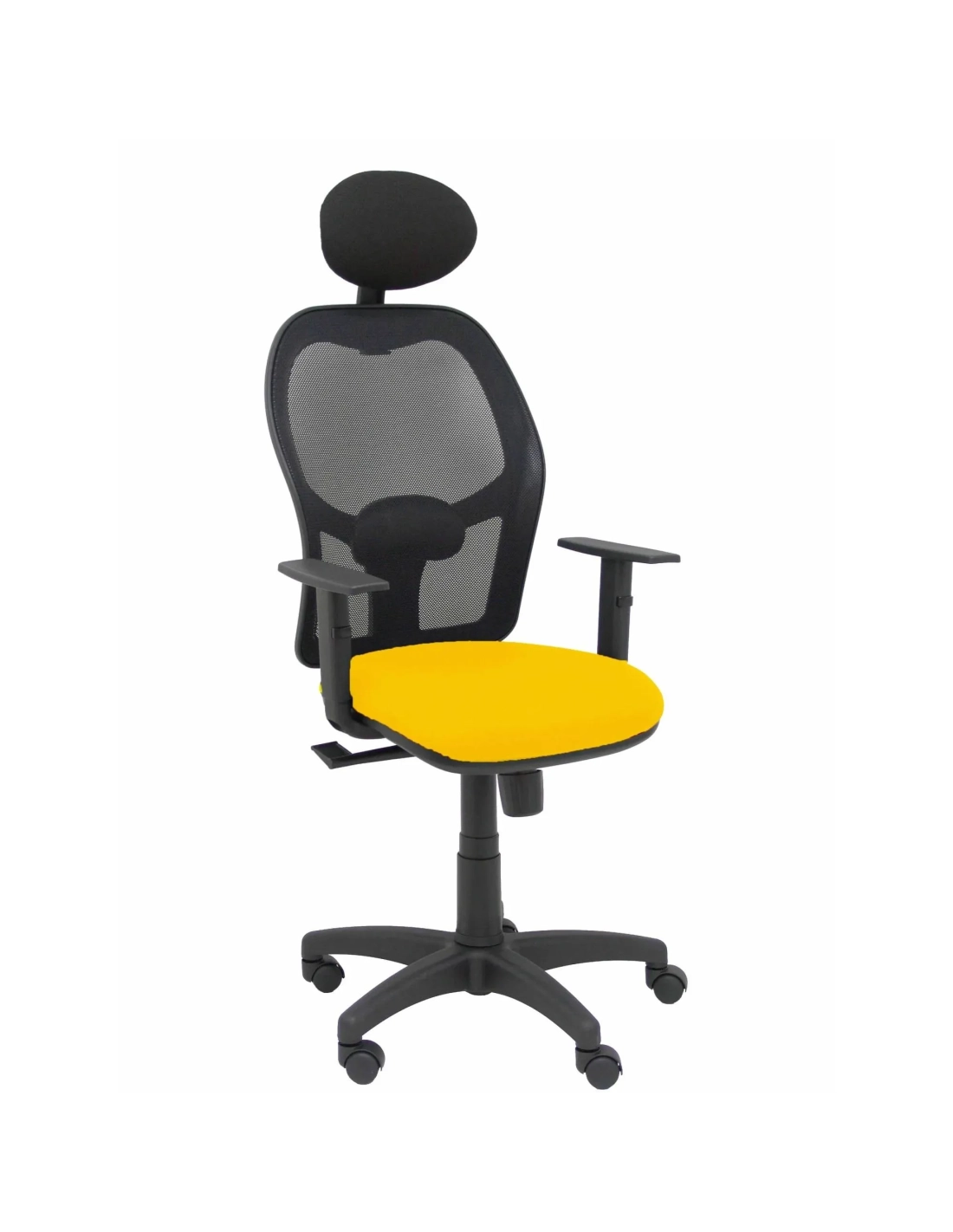 Refuerzo lumbar Regulable en altura mediante cilindro de gas Giratoria 360º Base poliamida de alta resistencia de 5 radios y 60 cm de diámetro, en color negro Ruedas de nailon Favorece una buena postura integral para evitar posibles problemas de espalda