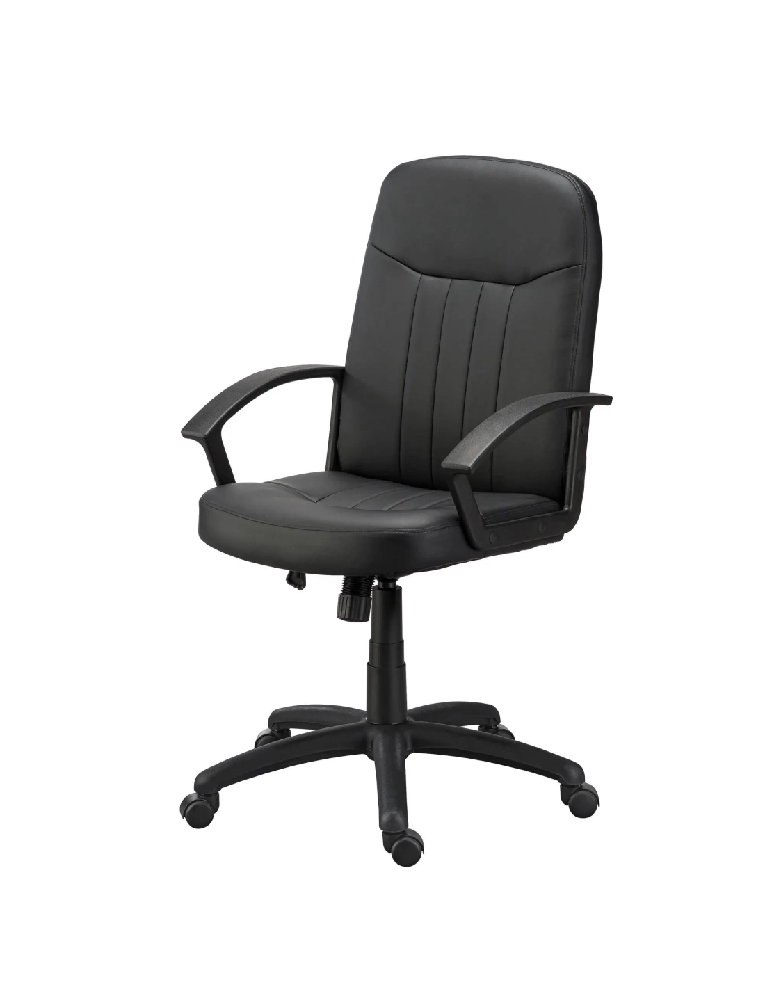 Sillón de oficina con laterales y trasera de piel sintética aportan una línea elegante.