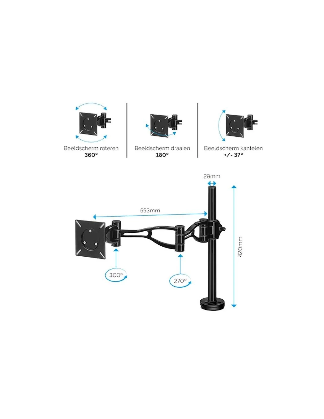 Admite una pantalla de hasta 10 kg y 32", agarre por abrazadera