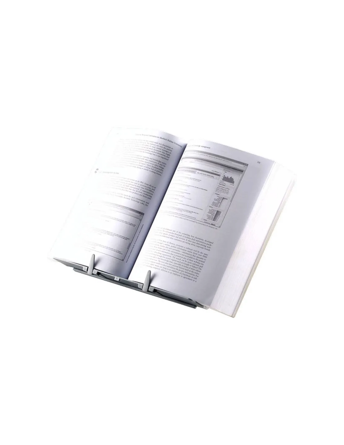 Atril específicamente diseñado para libros , manuales de gran tamaño o material de referencia • Dos clips ajustables que sujetan las páginas abiertas en el lugar deseado • Nueve ajustes de altura para adaptarse a prácticamente cualquier tamaño de libro y un ángulo de visión •