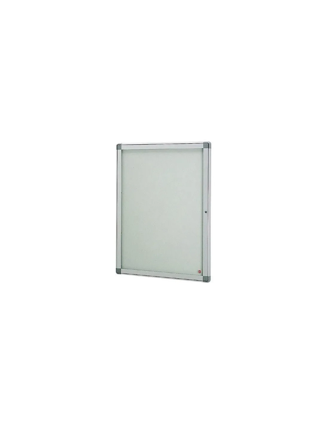 Cuadro perfilado de alumino lacado poliéster. 5 colores para elegir. Esquinas redondeadas, aspecto acero. Fondo metal prelacado gris (RAL 9002) Seguridad: Bisagras invertibles integradas en el marco y cerradura con doble cierre para mayor seguridad.Vitrina interior aluminio 9 hojas JMB metal