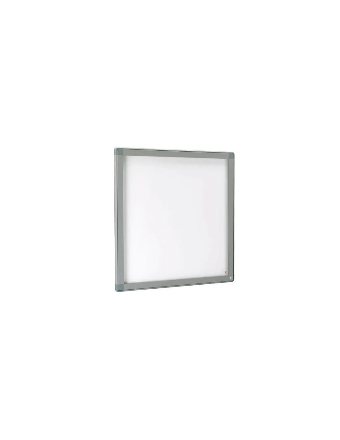 Cuadro perfilado de alumino lacado poliéster. 5 colores para elegir. Esquinas redondeadas, aspecto acero. Fondo metal prelacado gris (RAL 9002) Seguridad: Bisagras invertibles integradas en el marco y cerradura con doble cierre para mayor seguridad.Vitrina exterior 12 hojas gris