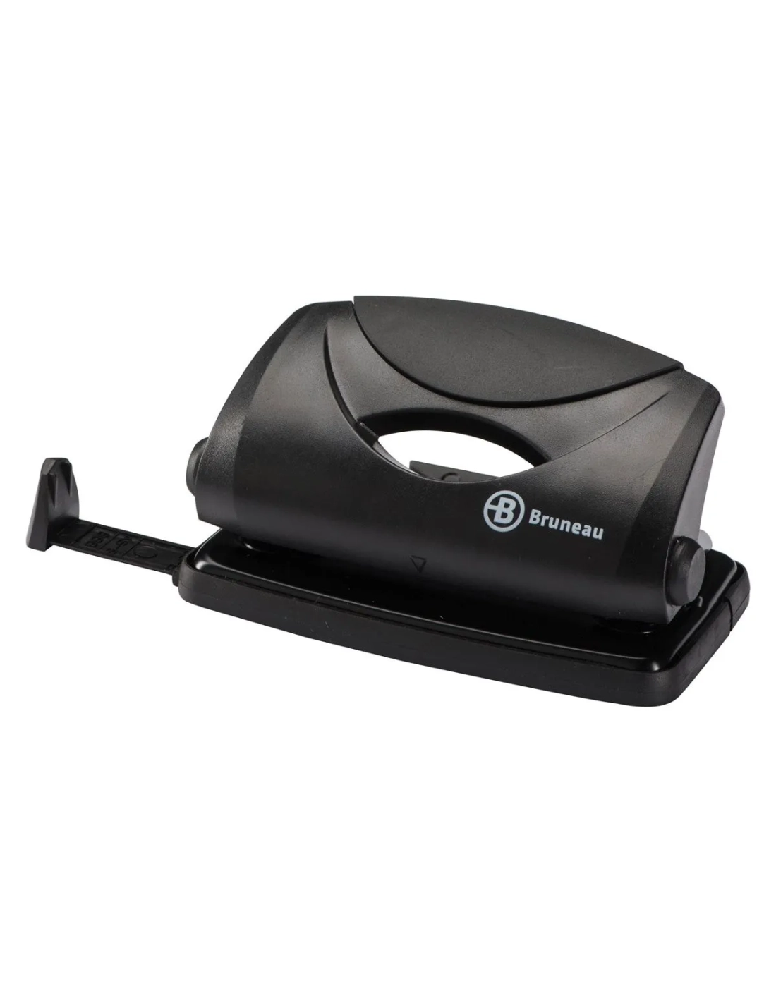 Cuerpo de metal lacado. Diseño ergonómico. Diametro de los punzones 6mm. Espacio entre orificios 8cm. Regleta de guia integrada.