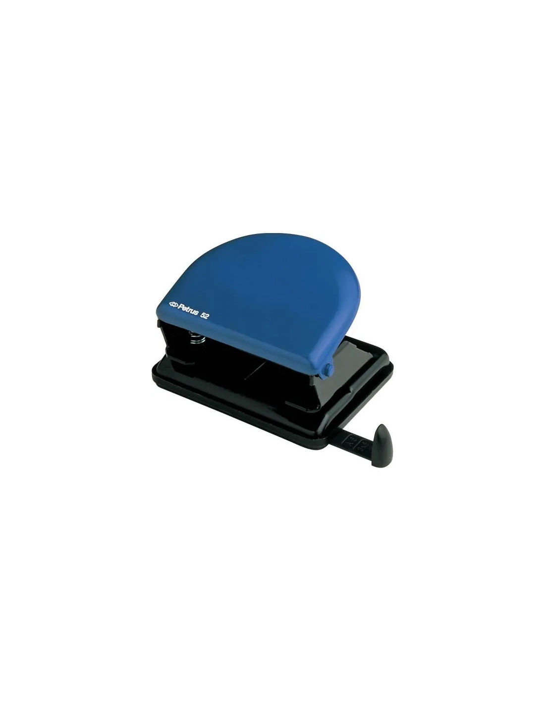 Dos punzones y regleta de centrado. Estructura metálica. Color: Negro. nº de hojas: 20.Perforadora Petrus 52 negro,Separación entre orificios de 8 cm. Diámetro de perforación de 5,5 mm. Regleta graduada para formatos A4, A5 y A6, para centrar páginas. Dimensiones: 11 x 9 x 7,5 cm. Capacidad de perforación de 20 hojas