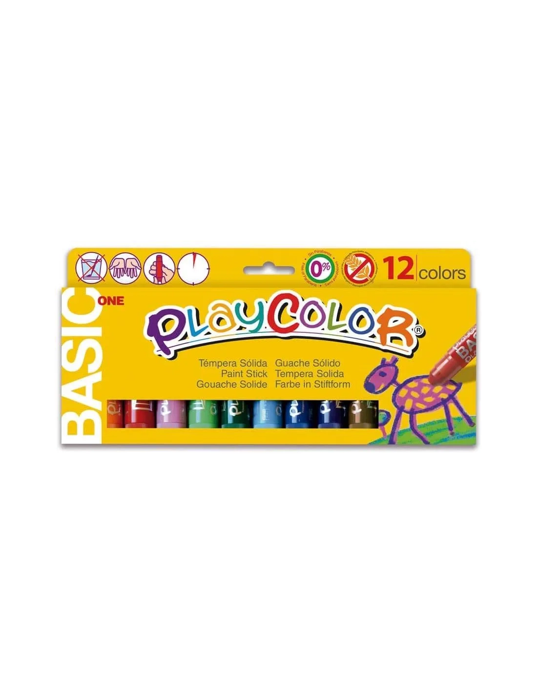 Producto presentado en estuche de cartón, con 12 colores diferentes en su interior. Tempera sólida escolar Playcolor One INSTANT Educa. En formato barra de 10 gr. No arruga el papel, no necesita barniz.