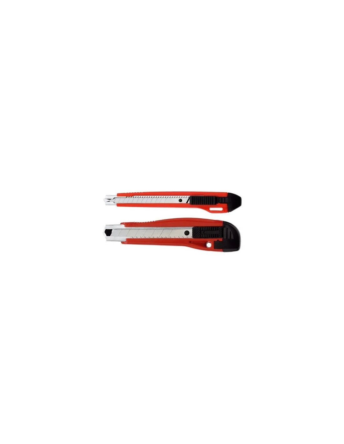 Cutter fabricado en cuerpo de plástico de alta resistencia, con sistema de bloqueo de cuchilla. Cuchillas tronzables de acero. Con guía metálica. Cuchílla de 18mm .