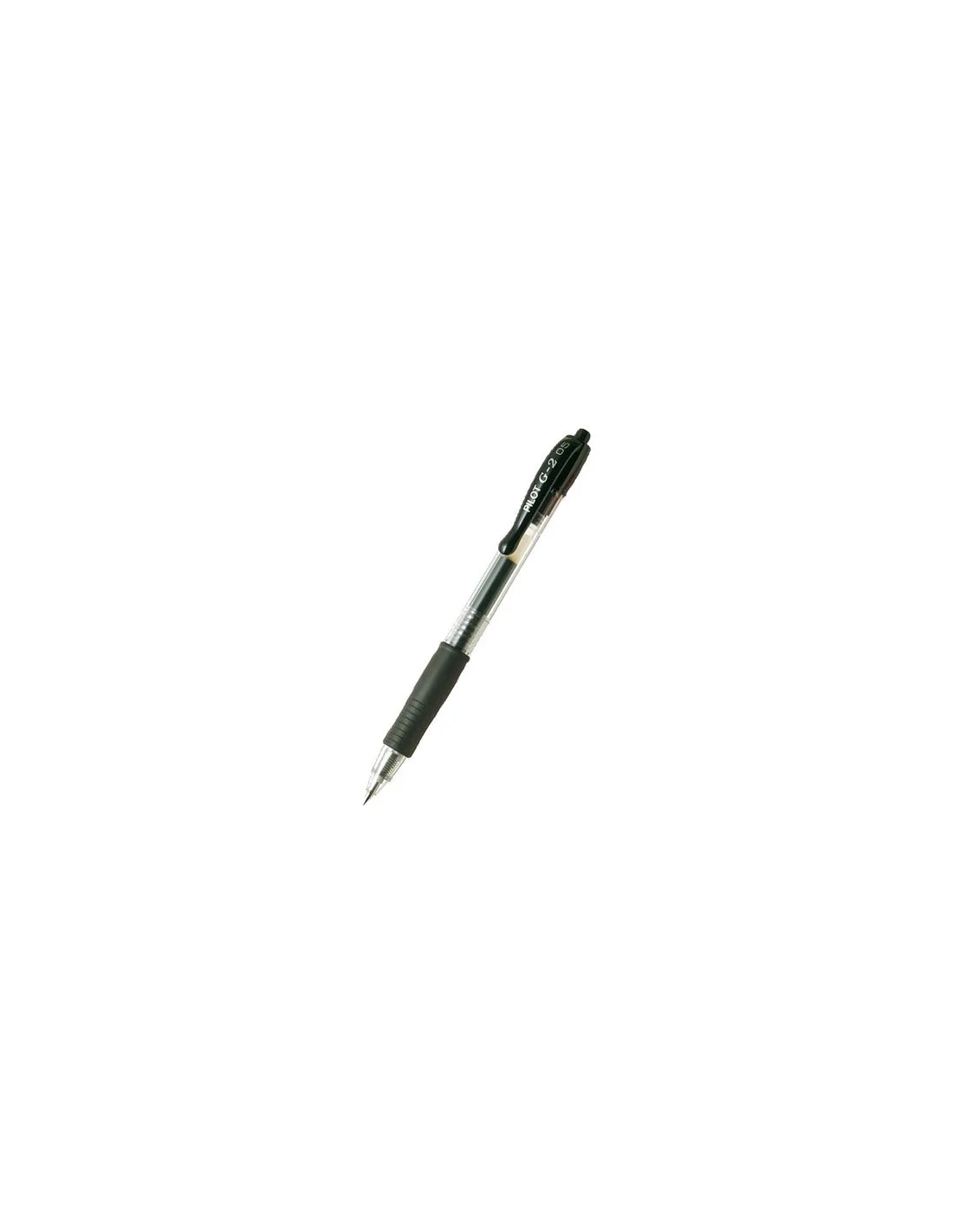 Punta de bola indeformable en carburo de tungsteno. Tinta gel. Nivel de tinta visible. Punta retráctil. Zona de sujeción de caucho. Negro.Bolígrafo Pilot G-2 rectráctil 0,5 mm negro